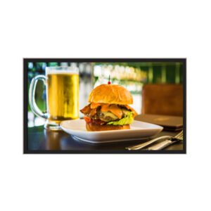 Sistema avanzado de publicidad digital 4K de montaje en pared con reproductor multimedia integrado, diseñado para funcionar de forma continua 24/7.