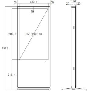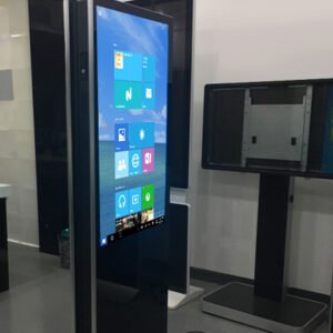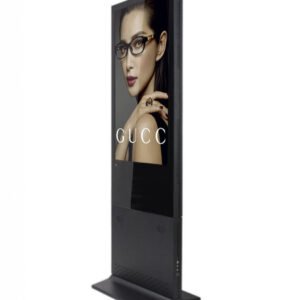 Pantalla LCD de alta gama ultra delgada y de doble cara, diseñada para uso en interiores. Su acabado en vidrio negro elegante y su diseño estilizado la convierten en una solución premium para señalización digital.