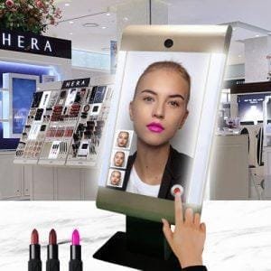 Fantástica pantalla táctil capacitiva All-in-One PC de 15″, 18″ y 21.5″, perfecta como portal en línea omnicanal para tiendas minoristas o con cámara HD para crear un espejo inteligente interactivo, popular en el sector de la belleza y cosméticos y esencial en las tendencias de experiencia del cliente actuales. También están disponibles espejos inteligentes de tamaño completo con pantallas de resolución HD o 4K en tamaños de 55″, 65″ y 86″. Podemos desarrollar software para tu marca que permita a los clientes tomar y almacenar videos/fotos de ellos mismos probándose gafas de sol, maquillaje, ropa, etc., y comparar con clips anteriores para ver qué estilos les gustan más. También podemos agregar sensores RFID para que el espejo inteligente detecte automáticamente los artículos seleccionados cuando el producto/etiqueta RFID se coloca cerca del sensor.