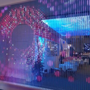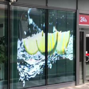 Tecnología increíble de película adhesiva LED transparente. Ultraligera y sin necesidad de marcos voluminosos, transforma ventanas y fachadas de vidrio en video dinámico al adherirse directamente sobre el cristal.