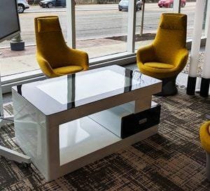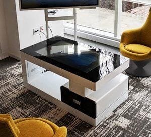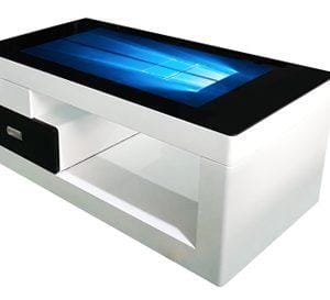 Elegante mesa de centro táctil con pantalla moderna, equipada con un vidrio capacitivo templado impermeable e irrompible de 6 mm de grosor. La pantalla está disponible en 42″, 46″ y 50″ con resolución 4K Ultra HD. El cerebro de esta mesa inteligente está inteligentemente instalado en el lateral de la mesa con una puerta con cerradura, de modo que el cajón inferior con cerradura puede utilizarse para asegurar objetos importantes, revistas, etc. Las mesas táctiles son ideales para marketing, puntos de venta o puntos de información. Este diseño es ideal para una oficina, vestíbulo, sala de espera o área de descanso, sala de estar, etc. A medida que más empresas utilizan aplicaciones para interactuar y presentar productos y servicios a los clientes, las mesas táctiles son una forma natural de fusionar el mundo digital con el físico. Todas nuestras mesas táctiles vienen listas para usar con el sistema operativo Windows 10 preinstalado y configuradas según sus requisitos.