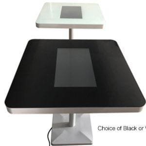 La CAFE22 es una forma asequible de mejorar la experiencia del cliente en tu restaurante. La mesa es de calidad comercial, con un vidrio templado impermeable e irrompible de 6 mm de grosor de borde a borde, que protege una pantalla LCD HD de 22″ y una pantalla táctil capacitiva de 10 puntos. Tiene 2 zonas de carga inalámbrica en la superficie de vidrio, lo que permite a los clientes cargar sus teléfonos mientras comen. La conectividad WiFi permite acceso a Internet, lo que le da a la mesa la capacidad de conectarse a sistemas POS y procesar pagos a través de software de pedidos de menú. Además, se pueden descargar cientos de juegos desde Google Play o la tienda de aplicaciones de Windows. La mesa incluso tiene un lector de tarjetas de crédito RFID opcional, para que los clientes puedan pagar directamente desde su mesa después de una comida. Perfecta para cafeterías, cafés, restaurantes, hoteles, aeropuertos o cafeterías escolares. Disponible en tamaños de pantalla de 21.5″ y 42″, en color blanco o negro.