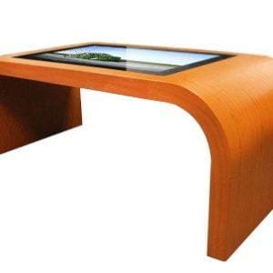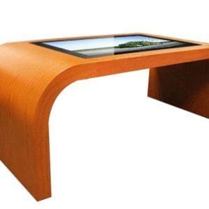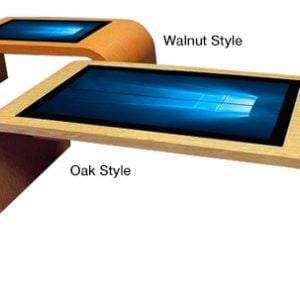 Mesa multitáctil elegante con acabado en roble o nogal. Disponible en altura de mesa de centro de 22″ o modelos completos de 30″ de altura. Estas mesas no son de madera real, sino que están hechas de acero con una tecnología de impresión de grano de madera por transferencia de agua. Elige entre pantallas de 42″, 46″, 50″ o 55″ con resolución HD o 4K y pantalla táctil capacitiva con vidrio protector templado de 3 mm. Las especificaciones del ordenador pueden configurarse según tus requisitos. Estas mesas táctiles modernas mejorarán cualquier entorno profesional, como un tribunal, oficina de abogados, institución bancaria, hoteles, tiendas minoristas o el hogar. Fáciles de usar, solo hay que enchufarlas y están listas para usar. El diseño de bordes redondeados de esta mesa también está disponible sin el acabado de madera y pintado en blanco, negro o el color de tu elección.