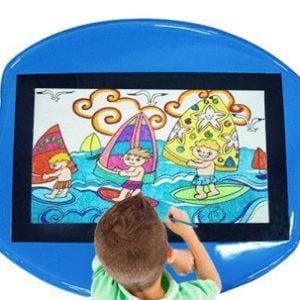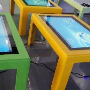 Mesa táctil divertida de 43″ con pantalla capacitiva para niños. Estas mesas multitáctiles son perfectas para una sala de juegos preescolar, aula de jardín de infantes, concesionarios de autos, centros comerciales, salas de espera de hospitales, etc. Nuestras mesas táctiles para niños tienen un recubrimiento de resina suave y bordes curvados para mayor seguridad. Están disponibles en una variedad de formas, tamaños y colores, y las especificaciones del ordenador pueden configurarse según tus requisitos. Vienen con tu elección de sistema operativo Android o Windows 10. Haz clic en la pestaña de video a la izquierda de la descripción del producto para ver la calidad de nuestras mesas. Toca el código QR para ver esta mesa en 3D y visualizarla en Realidad Aumentada en tu espacio.
