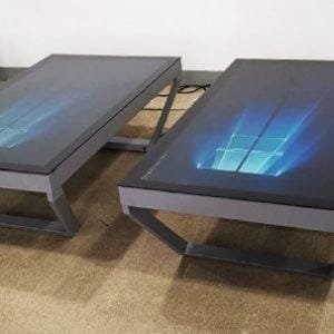 Elegante mesa táctil moderna con un diseño de patas de riel de aluminio. La superficie de la mesa está hecha de vidrio templado impermeable de 4 mm de grosor con pantalla táctil capacitiva de 10 puntos. Esta mesa táctil es perfecta para una sala de estar en el hogar y es una herramienta de marketing increíble en habitaciones o vestíbulos de hoteles, bancos u oficinas. La mesa viene lista para usar, con Windows 10 preinstalado, y las especificaciones del ordenador pueden configurarse según sus requisitos.